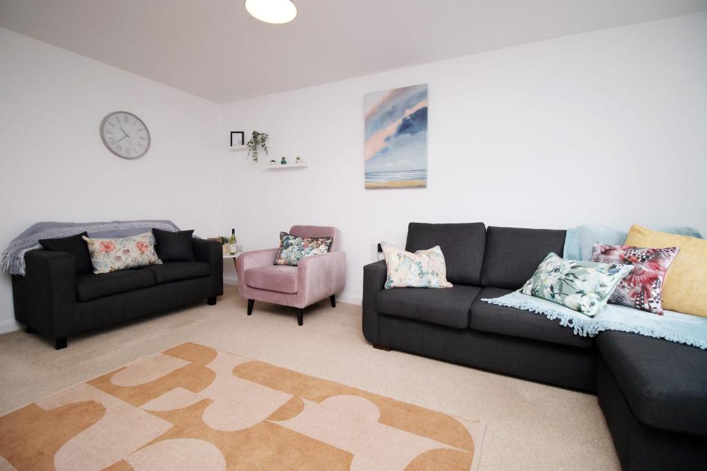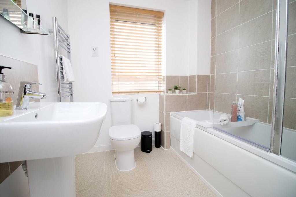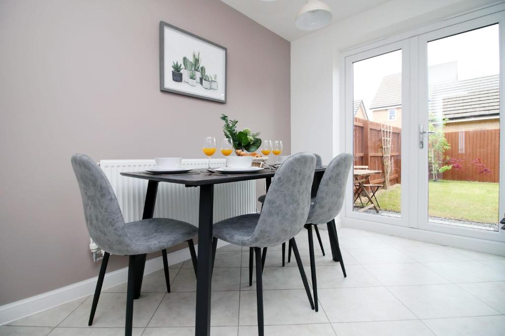 ”Ebbw House by Mia Living is a contemporary three bedroom house, with two double bedrooms, plus a twin bedroom with two single beds. The house comes with a spacious lounge area which is perfect for relaxing in front of the TV, plus a fully equipped kitchen where you can find everything you need for your stay, including a fridge freezer, a washing machine, microwave and coffee machine. There free off road parking at the property, plus a beautiful garden with outdoor dining set.