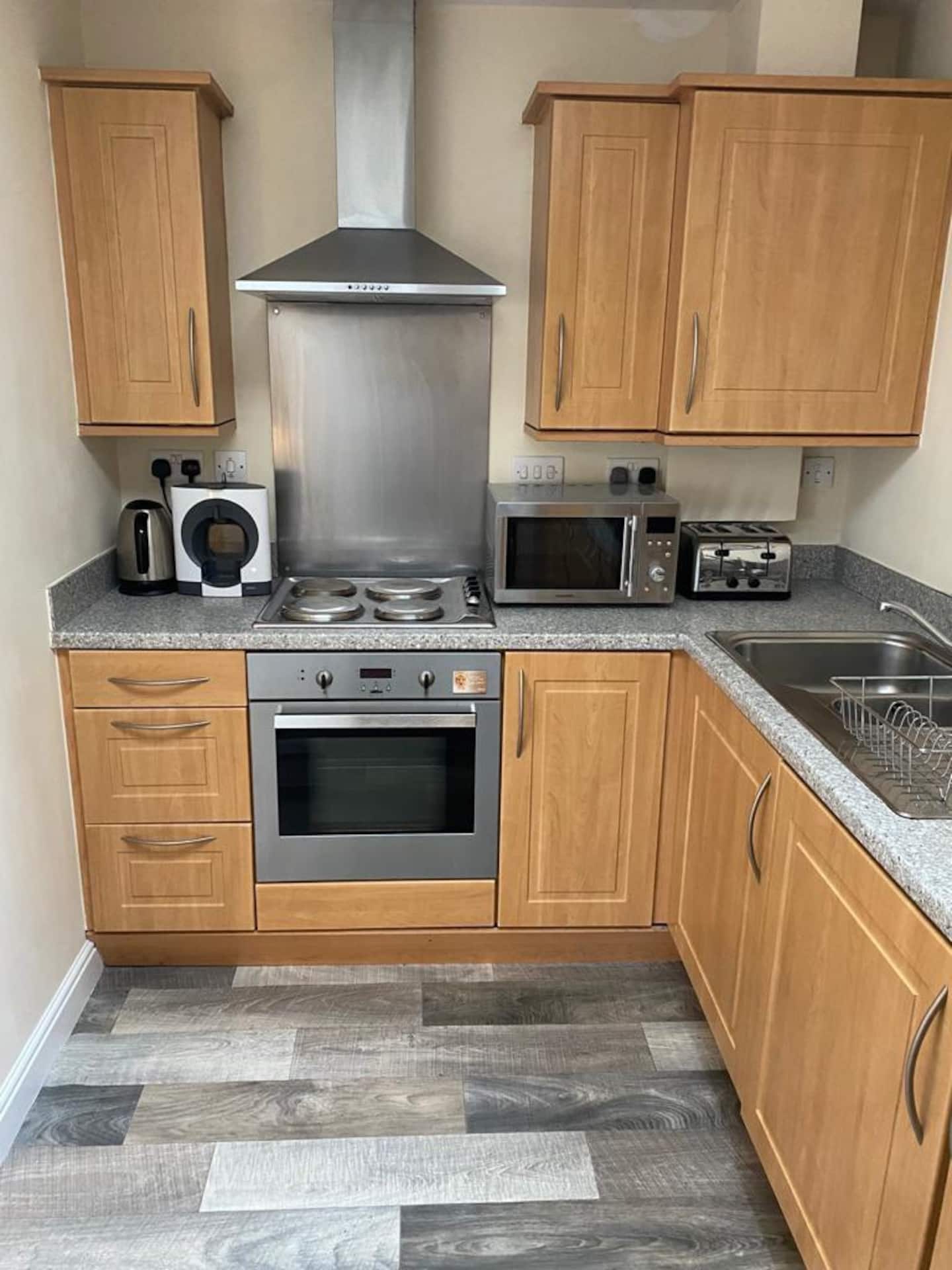 The cosy living room, also hosts a double sofa bed and single sofa bed for any additional guests. The bathroom hosts a shower over the bath. The apartment comes with a fully fitted kitchen, complete with everything you need to enjoy a home cooked meal, in your home away from home.”