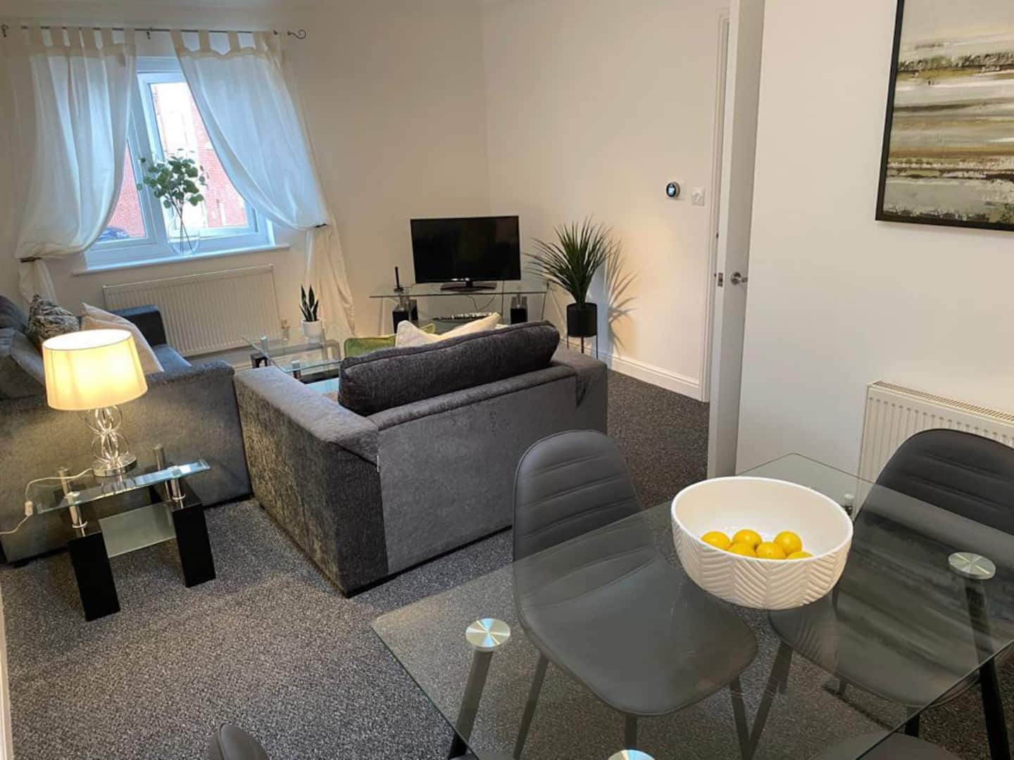 **SHORT & LONG TERM LETS AVAILABLE. Fully Serviced Accommodation!** ”Alicia Newport by Mia Living is a modern two bedroom apartment located in Newport. The apartment consists of two bedrooms, one with a Super King Bed, which can be split to make two single beds if required and a double bedroom.